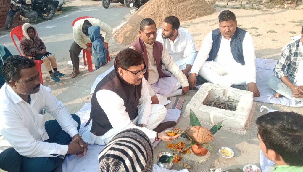 चुनार उस्मानपुर मोहल्ले में माननीय अनुराग सिंह विधायक जी द्वारा गणेश मंदिर बनाने के लिए भूमि पूजन हुआ संपन्न