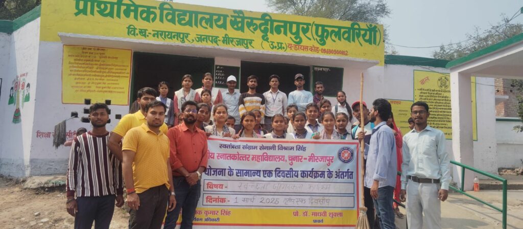 स्वतंत्रता संग्राम सेनानी विश्राम सिंह राजकीय महाविद्यालय चुनार मीरजापुर में आज दिनांक – 1 मार्च 2025 को तृतीय एकदिवसीय सामान्य कार्यक्रम के अंतर्गत मलिन बस्ती खैरुद्दीनपुर में स्वच्छता, शिक्षा एवं स्वास्थ्य जागरूकता कार्यक्रम विषय पर जनजागरूकता कार्यक्रम आयोजित किया गया।