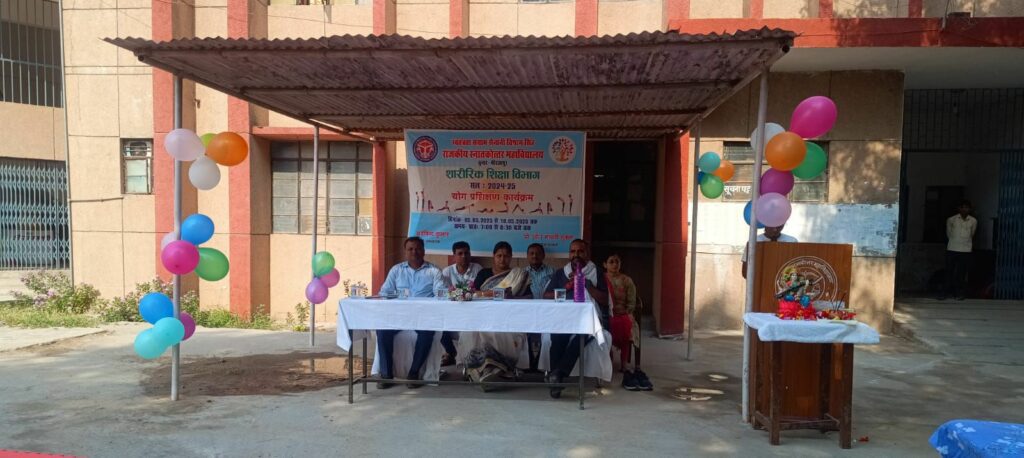 स्वतन्त्रता संग्राम सेनानी विश्राम सिंह राजकीय स्नातकोत्तर महाविद्यालय चुनार मीरजापुर के तत्वावधान में दिनांक 05 मई 2025 को योग प्रशिक्षण कार्यक्रम (योग सप्ताह)का शुभारंभ किया गया। उक्त कार्यक्रम योग सप्ताह के रूप में दिनांक 05 मई से 10 मई 2025 तक (प्रातः 7 बजे से 8:30 बजे तक) मनाया जाएगा। कार्यक्रम का उद्घाटन महाविद्यालय की प्राचार्य प्रोफेसर माधवी शुक्ला के कर कमलों से सरस्वती प्रतिमा पर दीप प्रज्ज्वलन एवं माल्यार्पण द्वारा किया गया। इस अवसर पर उन्होंने अपने संबोधन में कहा कि”योगः कर्मसु कौशलम्” अर्थात कर्मों में कुशलता ही योग है। कार्यक्रम के मुख्य प्रशिक्षक योगी राम ध्यान जी रहें। कार्यक्रम का समन्वयन शारीरिक शिक्षा विभाग के प्रभारी श्री अरविन्द कुमार ने किया। उक्त दिवस के कार्यक्रम के प्रभारी डॉ राजेश कुमार एवं सह प्रभारी डॉ मंजुला शुक्ला रहीं। उक्त अवसर पर डॉ संकठा प्रसाद सोनकर सहित महाविद्यालय के प्राध्यापक,प्राध्यापिकाएं,कर्मचारीगण एवं बहुतायत संख्या छात्र छात्राएं उपस्थित रहें।