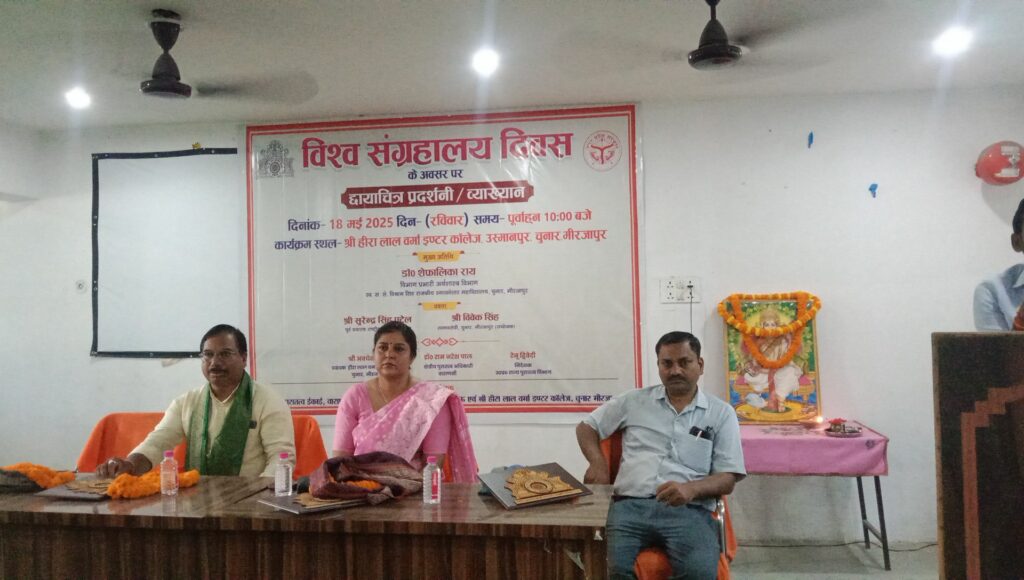 श्री हीरालाल वर्मा इंटर कॉलेज उस्मानपुर चुनार मिर्जापुर में मनाया गया विश्व संग्रहालय दिवस जिसकी मुख्य अतिथि रही डॉक्टर शेफालिका राय विभाग प्रभारी अर्थशास्त्र विभाग विश्राम सिंह राजकीय महाविद्यालय चुनार सुरेंद्र सिंह पटेल के प्रचारक राष्ट्रीय स्वयं सेवक संघ विवेक सिंह समाजसेवी चुनार संयोजक अवधेश कुमार वर्मा इंटर कॉलेज प्रबंधन डॉ राम नरेश पाल क्षेत्रीय पुरातत्व अधिकारी वाराणसी रेनू त्रिवेदी निदेशक उत्तर प्रदेश राज्य पुरातत्व विभाग श्री हीरालाल वर्मा इंटर कॉलेज के छात्र छात्राएं उपस्थित रहे विद्यालय के टीचर्स भी उपस्थित रहे