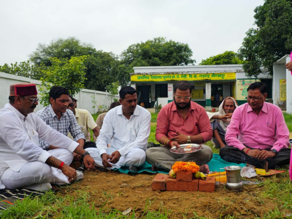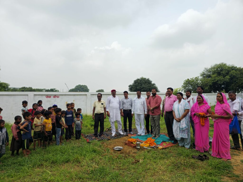 ग्राम पंचायत भेड़ी विकास खण्ड राजगढ़ में आंगनवाड़ी केन्द्र भवन निर्माण हेतु मां0 ब्लाक प्रमुख राजगढ़ द्वारा किया गया भूमि पूजन.