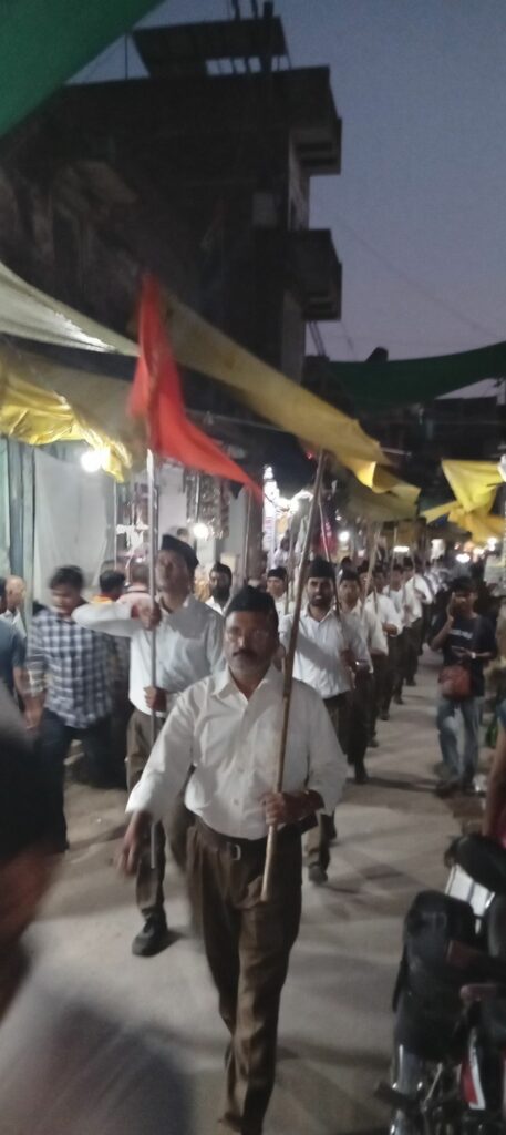 नगर मे स्थित पाण्डेय बेचन शर्मा’उग्र’ सभागार में मनाया। कार्यक्रम का शुभारंभ राजकिय पीजी कालेज के असिस्टेंट प्रो0 दीपक सिंह के अध्यक्षता में स्वयंसेवकों ने अमृत वचन गीत के साथ शस्त्र पूजन व ध्वज नमस्कार कर किया गया। बौद्धिक कार्यक्रम मे प्रान्त गौ सेवा प्रमुख अरविंद ने कहा कि संघ का उद्देश्य त्याग सेवा समर्पण के साथ ही राष्ट्र के लिए ब्यक्ति और ब्यक्तित्व का निर्माण करना है। तत्पश्चात पूर्ण गणवेश में पथ संचलन टेकौर, सराय, लालदरवजा, सद्दुपुर मोहाना होते हुए गांधी मैदान पहुँच कर समापन किया गया।