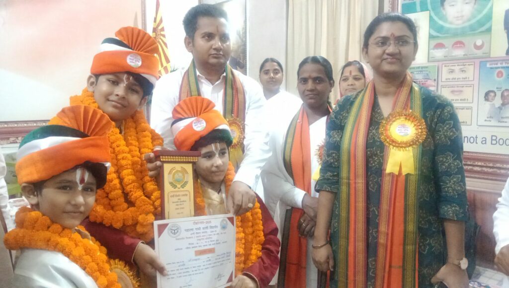 चुनार मिर्जापुर। प्रजापिता ब्रह्माकुमारी ईश्वरीय विश्वविद्यालय शाखा चुनार में रविवार को मेरा भारत नशा मुक्त भारत अभियान में पिछले कुछ दिनों से अपनी प्रस्तुति देने वाले बाल कलाकार रामकृष्ण का सम्मान किया गया।ज्ञात हो कि विगत दिनों बाल कलाकार रामकृष्ण द्वारा महात्मा गांधी काशी विद्यापीठ में पर्यावरण पर गीत प्रस्तुत करने पर उत्तर प्रदेश की राज्यपाल आनंदी बेन पटेल द्वारा रामकृष्ण को सम्मानित किया गया था। इसी क्रम में प्रजापिता ब्रह्माकुमारी ईश्वरीय विश्वविद्यालय शाखा चुनार में भी बाल कलाकार रामकृष्ण को सम्मानित किया गया। इस दौरान उपजिलाधिकारी राजेश कुमार वर्मा, क्षेत्राधिकारी मंजरी राव,तहसीलदार इवेंद्र सिंह,इंजीनियर राजबहादुर सिंह,सभासद संगीता सिंह,पूर्व सभासद ज्योति प्रकाश सिंह,महर्षि पप्पू,मनीष,कीर्ति सागर,शाखा प्रभारी ब्रह्माकुमारी बीनू,सह प्रभारी तारा,चनतारा,दीपिका,ब्रह्मकुमार पंकज,जगदीश आदि उपस्थित रहे।