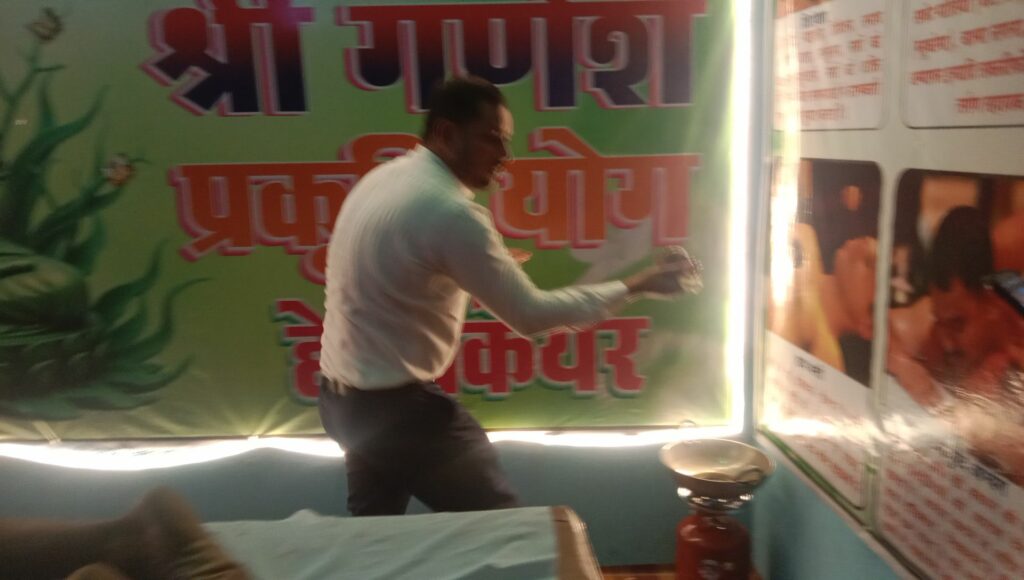 श्री गणेश प्राकृति योग हेल्थ केयर द्वारा, राष्ट्रीय प्राकृतिक चिकित्सा दिवस के मौके पर 50 लोगो का निशुल्क शिविर मे कास्य फुट मसाज किया गया