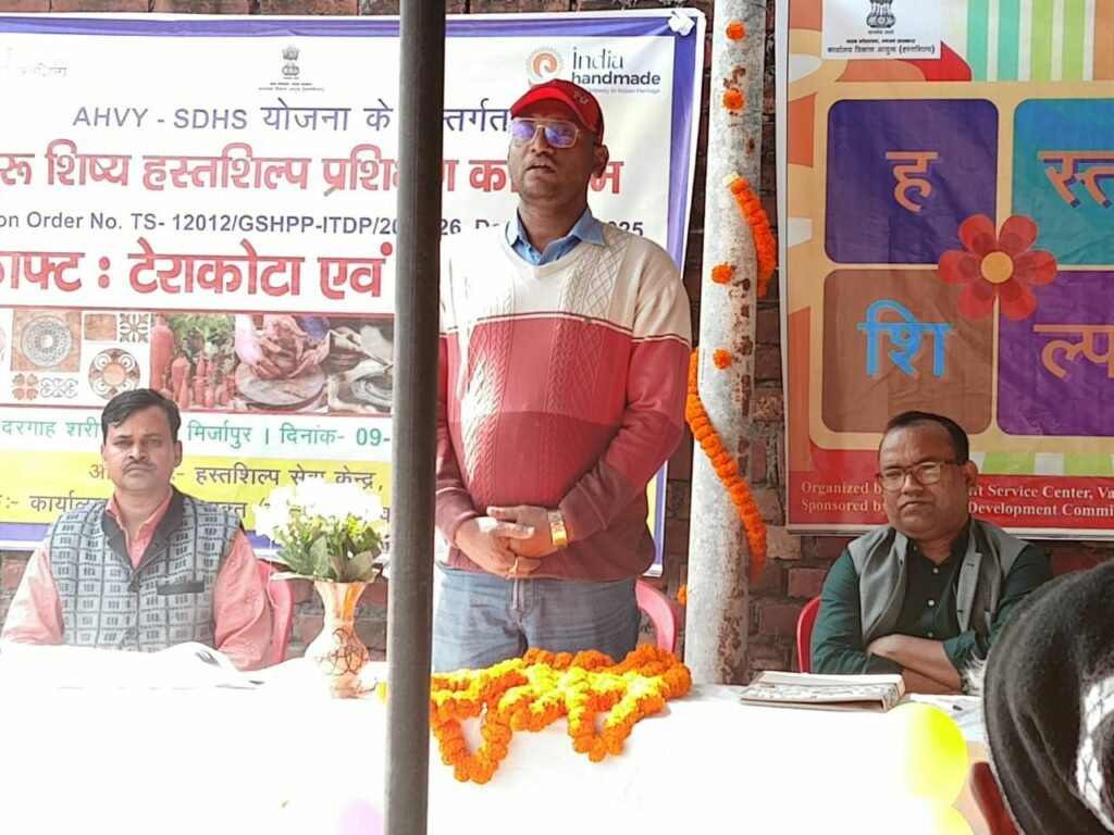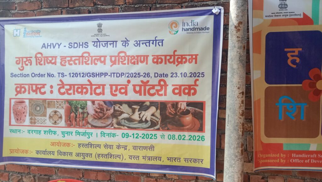 हस्तशिल्प सेवा केंद्र वाराणसी द्वारा टेराकोटा एवं पटरी वर्कशॉप का आयोजन किया गया जिसमें भारी संख्या में लोगों को हस्तशिल्प का प्रशिक्षण कराया गया प्रशिक्षण का कार्य पूरे 50 दिनों तक किया जाएगा कार्य करने के लिए चक्र और अन्य सामग्रियों का भी वितरण कराया जाएगा