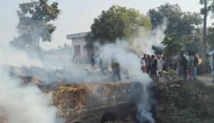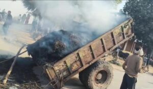 मिर्जापुर। थाना अहरौरा, इमलिया चट्टी चौकी क्षेत्र के ग्राम सभा अतरौली (छोटी) के पास ट्रैक्टर पर लदा पुआल जा रहा था, जिसमें किसी तरह आग लगने से देखते ही देखते आग भयानक रूप ले लिया कुछ लोगों की सहायता से ट्रैक्टर ट्राली को छटकाया गया परंतु सहायता करने पहुंचा युवक सहायता करते-करते अपनी जान को गवां दिया। इस घटना से क्षेत्र में बड़ी ही कोहराम मचा हुआ है परिजनों का रो रो का बुरा हाल है।