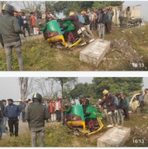 ऑटो और मोटरसाइकिल में हुई जोरदार टक्कर ऑटो पलटी मोटरसाइकिल हुई क्षतिग्रस्त