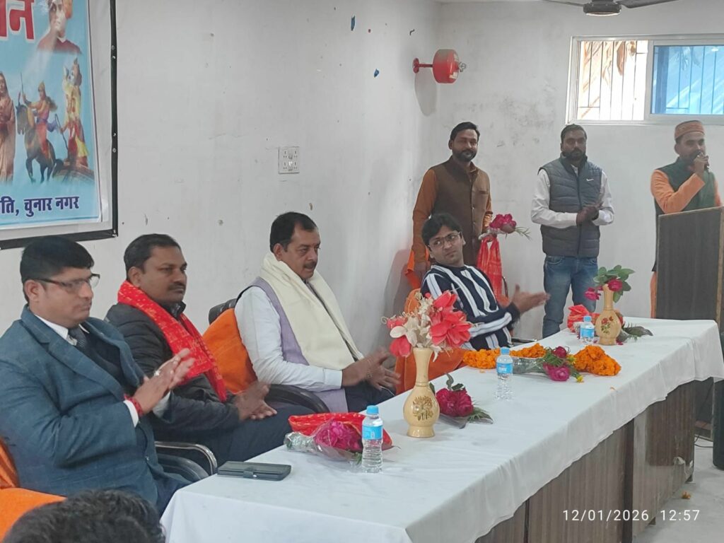 12 जनवरी को संघ शताब्दी वर्ष एवं स्वामी विवेकानंद जी की जयंती (राष्ट्रीय युवा दिवस) के उपलक्ष्य पर चुनार नगर के श्री हीरालाल वर्मा इंटर कॉलेज उस्मानपुर में युवा सम्मेलन का गोष्ठी कार्यक्रम संपन्न हुआ अध्यक्षता डॉ विपुल रस्तोगी जी ने किया जिसमें मुख्य वक्ता श्रीमान डॉ कुलदीप पांडेय जी (प्रान्त बौद्धिक प्रमुख )जी रहे कार्यक्रम का संचालन सह नगर कार्यवाह धीरज जायसवाल जी ने किया कार्यक्रम की शुरुआत सरस्वती वंदना और स्वागत गीत के साथ हुआ वक्ता ने स्वामी विवेकानंद जी के व्यक्तित्व जीवन चरित्र पर वर्णन करते हुए युवाओं को प्रेरित किया पूरा सभागार भारत माता की जय व वंदे मातरम् की गूंज से राष्ट्र प्रेरित बना रहा समापन वंदे मातरम गीत से हुआ उक्त कार्यक्रम में राष्ट्रीय स्वयंसेवक संघ के पदाधिकारी, वरिष्ठ गणमान्य जन, युवा एवं छात्रों सहित सैकड़ों की संख्या में उपस्थित रहे।।