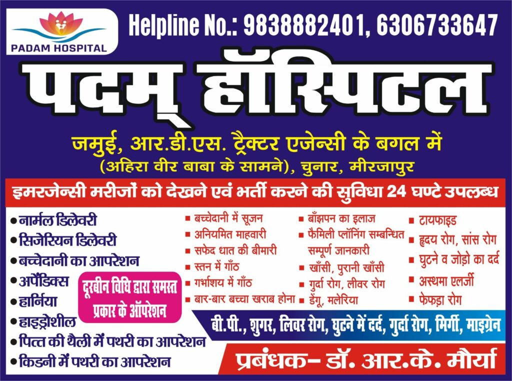 पदम हॉस्पिटल जमुई चुनार के तरफ से सभी देशवासियों और नगर वासियों को गणतंत्र दिवस 26 जनवरी की हार्दिक बधाई और शुभकामनाएं