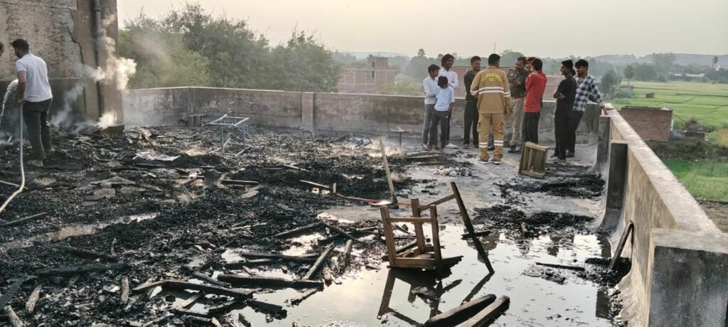 चुनार महाविद्यालय के ऊपरी छत पर रखे फर्नीचर पर आग लगने के कारण फर्नीचर जले