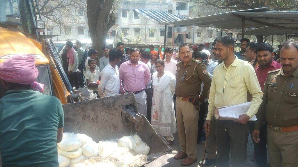 चुनार खोवा मंडी में खाद्य विभाग की छापेमारी मंडी में मचा हड़कमप