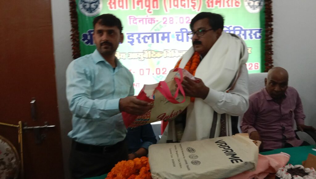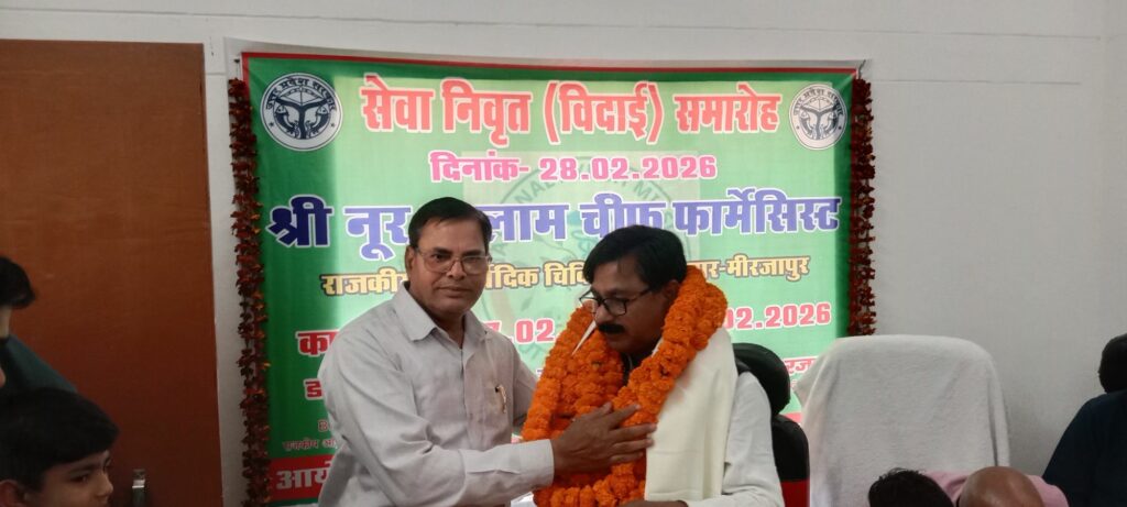 राजकीय आयुर्वेदिक चिकित्सालय चुनार मिर्जापुर सेवा निवृत विदाई समारोह का आयोजन दिनांक 28/ 02/ 2026 को डॉक्टर नूर इस्लाम चीफ फार्मासिस्ट का विदाई समारोह का आयोजन किया गया भारी संख्या में स्टाफ और डॉक्टर और नर्स उपस्थित रहे डॉक्टर नूर इस्लाम जी का कार्य कॉल 07/02/1991=28/02/2026 को समाप्त हुआ विदाई समारोह में उपस्थित रहे लोगों के नाम इस प्रकार रहे राजीव ओझा दैनिक देशपत्र लखनऊ डॉ दीपक मिश्रा डॉ अमित मौर्य चिकित्सा डॉ दीपिका द्विवेदी चिकित्सा अधिकारी तेंदुआ कला डॉ प्रमोद मिश्रा प्रभारी चिकित्सा अधिकारी आयुर्वेदिक जमुई डॉ रवि कुमार सिंह पूर्व प्रभारी चिकित्सा अधिकारी चुनार डॉ श्रीमती राजेश चौहान पूर्व महिला राजकीय चिकित्सा आयुर्वेदिक चुनार डॉक्टर प्यारेलाल पूर्व चीफ फार्मासिस्ट राजकीय आयुर्वेदिक चिकित्सा चुनार डॉ ओमकार पाठक पूर्व फार्मासिस्ट राजकीय आयुर्वेदिक चिकित्सा अधिकारी पचेवरा मिर्जापुर श्रीमती कमलावती देवी स्टाफ नर्स श्रीमती मंजू लता स्टाफ नर्स चुनार प्रमोद कुमार वार्ड बाय चुनार राज ओझा आदि लोग भारी संख्या में उपस्थित रहे इस विदाई समारोह कार्यक्रम में