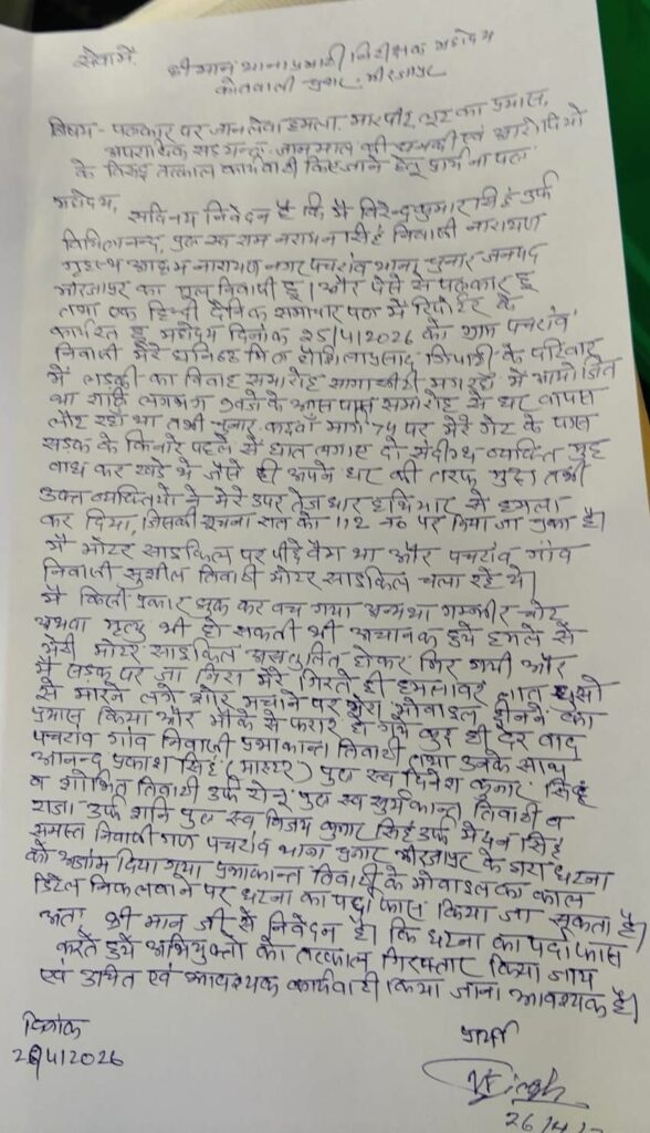 पीड़ित पत्रकार ने कुछ स्थानीय लोगों पर संदेह जताते हुए कहा कि यह हमला अचानक नहीं, बल्कि सोची-समझी साजिश के तहत कराया गया है। उन्होंने आरोपियों की कॉल डिटेल निकलवाने, सीसीटीवी जांच कराने और सख्त कार्रवाई की मांग की है।