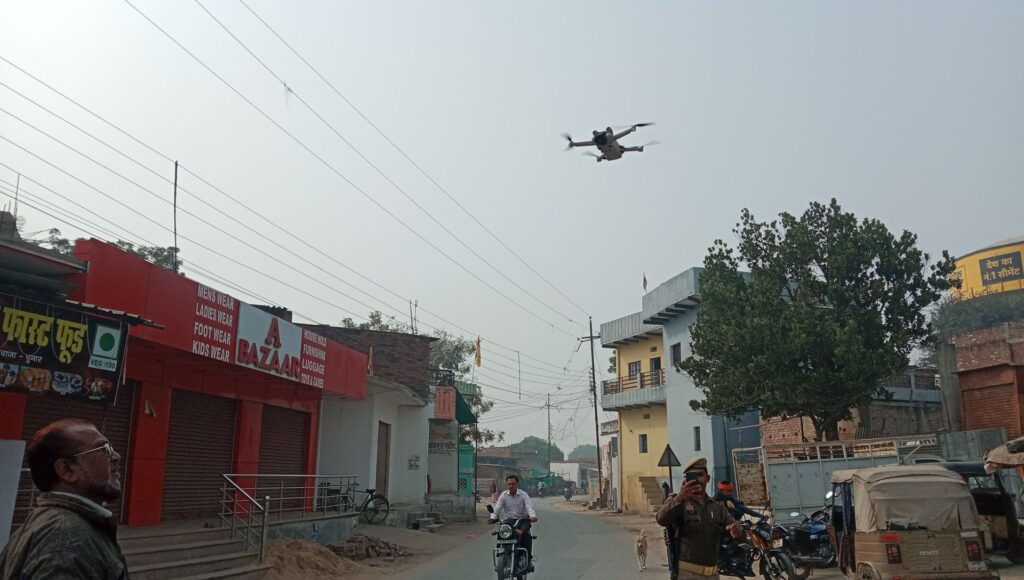 शुक्रवार को नमाज के दृष्टिगत चुनार दरगाह शरीफ जिन जिन मस्जिदों पर नमाज पढ़ी जाती है सुरक्षा की दृष्टि से ड्रोन कैमरा से निगरानी की गई